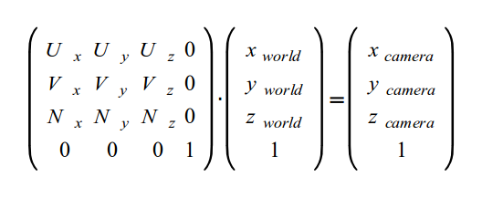 In order to transform a position in world space to the camera space defined by the UVN vectors we need to perform a dot product operation between the position and the UVN vectors. A matrix represents this best: