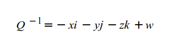 In practice, we specify a quaternion as the 4-vector (x, y, z, w). The conjugate of quaternion 'Q' is defined as: