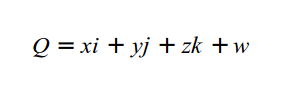 Luckily, we have an extremely useful mathematical tool for that problem - the quaternion. Quaternions were discovered in 1843 by Sir Willilam Rowan Hamilton, an irish mathematician, and are based on the complex number system. The quaternion 'Q' is defined as: