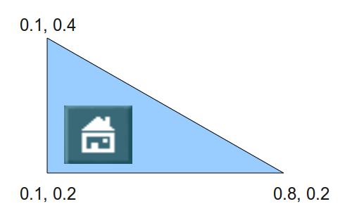 Let's say that we apply a texture such that when using these texture coordinates we get the picture of the small house in the location above. Now the triangle goes through various transformations and when the time comes to rasterize it it looks like this: