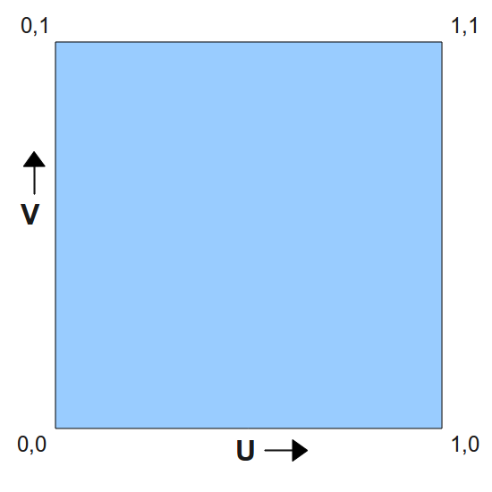 OpenGL supports several types of textures such as 1D, 2D, 3D, cube, etc that can be used for different techniques. Let's stick with 2D textures for now. A 2D texture has a width and height that can be any number within the limitations of the spec. Multiplying the width by height tells you the number of texels in the texture. How do you specify the texture coordinates of a vertex? - No, it is not the coordinate of a texel inside the texture. That would be too limiting because replacing a texture with one that has different width/height means that we will need to update the texture coordinates of all the vertices to match the new texture. The ideal scenario is to be able to change textures without changing texture coordinates. Therefore, texture coordinates are specified in 'texture space' which is simply the normalized range [0,1]. This means that the texture coordinate is usually a fraction and by multiplying that fraction with the corresponding width/height of a texture we get the coordinate of the texel in the texture. For example, if the texture coordinate is [0.5,0.1] and the texture has a width of 320 and a height of 200 the texel location will be (160,20) (0.5 * 320 = 160 and 0.1 * 200 = 20).