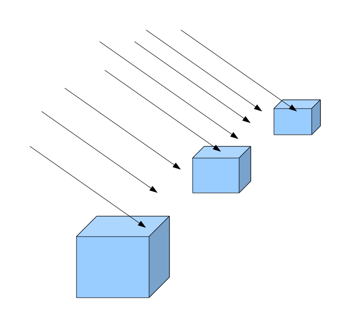 We will start with a light source called 'directional light'. A directional light has a direction but no specific origin. This means that all light rays are parallel to each other. The direction of light is specified by a vector and that vector is used to calculate the light on all objects in the scene, regardless of their position. The sun fits very nicely into the category of a directional light. If you try to calculate the precise angle by which the sun hits two adjacent buildings you will end up with two values that are almost identical (i.e. the difference between them will be an extremely tiny fraction). This is because the sun is located some 150 million killometers away. Therefore, we simply disregard its position and take only the direction into account.