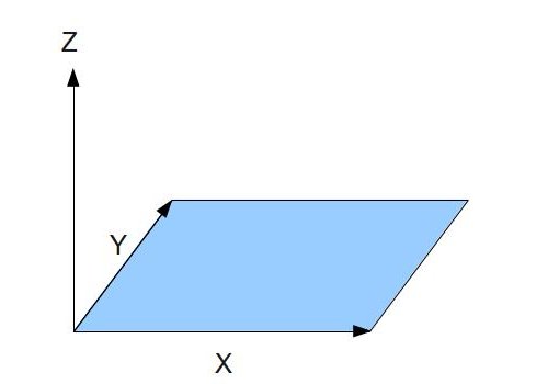 Let's define the coordinate system in which the normal vectors exist. This coordinate system requires three orthogonal axes of unit length. Since the normal is part of a 2D texture and 2D textures have two orthogonal axis U and V (both of unit length) the common practice is to map the X component of the system to the U axis and the Y component to the V axis. Remember that U goes from left to right and V from bottom to top (the origin in that system is the bottom left corner of the texture). The Z component of the system is considered to be going straight up from the texture and is perpendicular to both X and Y:
