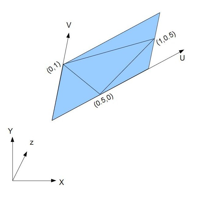 Let's take a look at the picture above more generically. We have triangle with three vertices at positions P0, P1 and P2 and texture coordinates (U0,V0), (U1,V1) and (U2,V2):