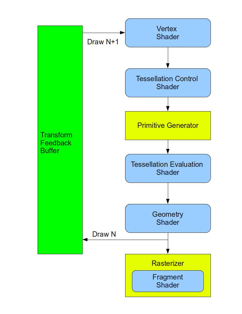 After the TES has processed the domain locations the PG takes the new vertices and sends them as triangles to the next stages of the pipeline. After the TES comes either the GS or the rasterizer and from here on everything runs as usual.
