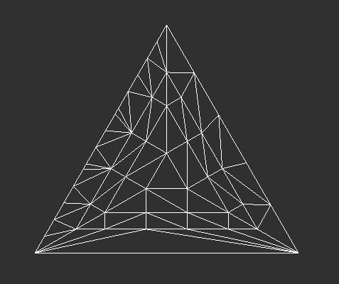 The PG takes the TLs and based on their values generates a set of points inside the triangle. Each point is defined by its own barycentric coordinate. The developer can configure the output topology to be either points or triangles. If points are chosen then the PG simply sends them down the pipeline to be rasterized as points. If triangles are chosen the PG connects all the points together so that the entire face of the triangle is tessellated with smaller triangles: