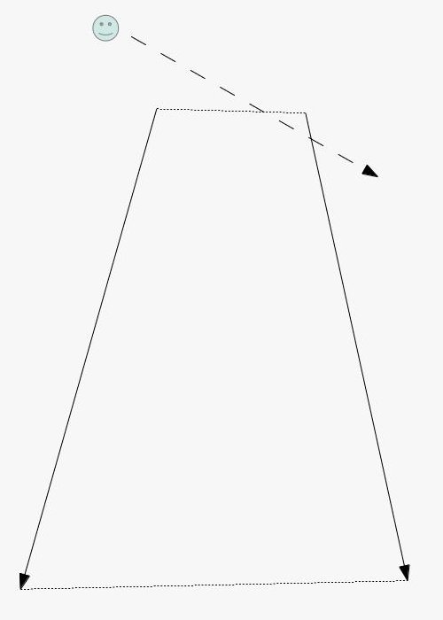 When we repeat this process of emitting quads from all silhouette edges a volume is created. Is that enough? definitely not. The problem is that this volume looks kind of like a truncated cone without its caps. Since our algorithm depends on checking the depth test of the front and back triangles of the volume we might end up with a case where the vector from the eye to the pixel goes through only either the front or back of the volume: