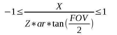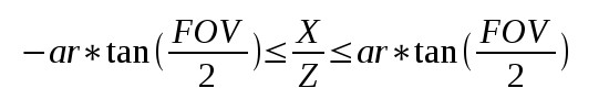 Note that the left and right hand side of the inequality are basically constants and can be calculated by the application before the draw call. This means that we can draw a full screen quad and prepare a 2D vector with those values for X and Y and have the GPU interpolate them all over the screen. When we get to the pixel we can use the interpolated value along with Z in order to calculate both X and Y.