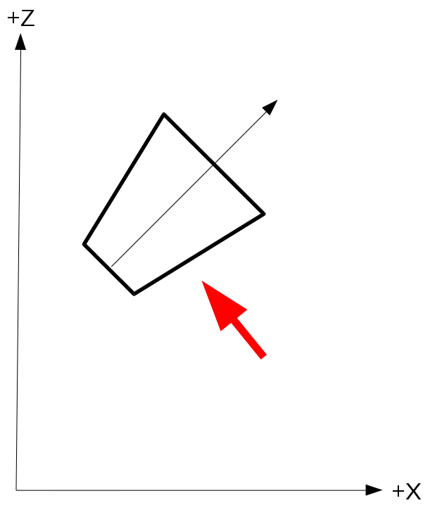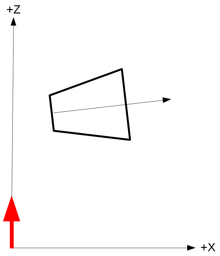 - With the frustum coordinates in world space we can now transform them to light space as any other object. Remember that the light space is exactly like view space but instead of the camera we use the light source. Since we are dealing with a directional light that has no origin we just need to rotate the world so that the light direction becomes aligned with the positive Z axis. The origin of light can simply be the origin of the light space coordinate system (which means we don't need any translation). If we do that using the previous diagram (with the red arrow being the light direction) the cascade frustum in light space should look like: